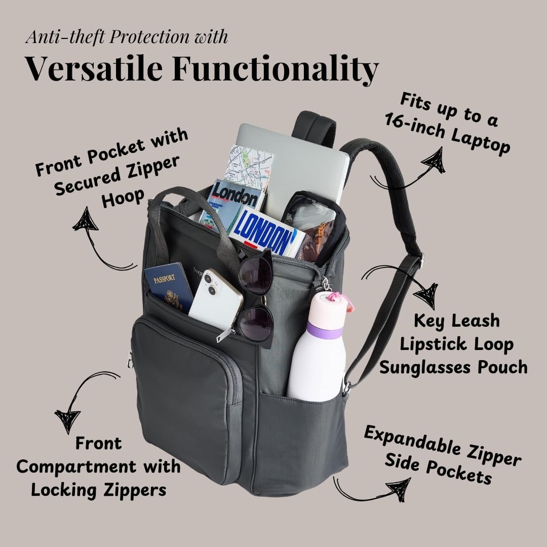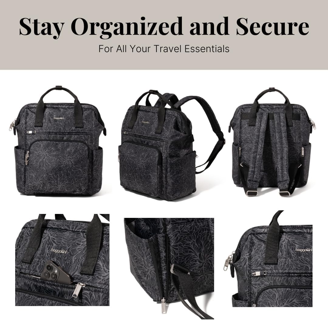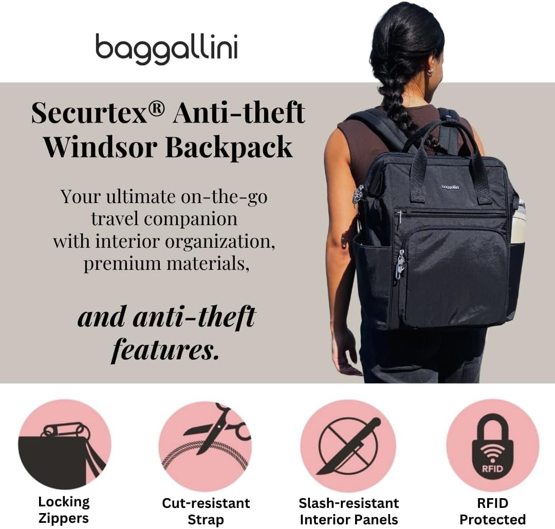 Baggallini Securtex Anti-Theft Windsor Backpack for Travel, Work & College, RFID & Locking Zipper, Up to 16″ Laptop