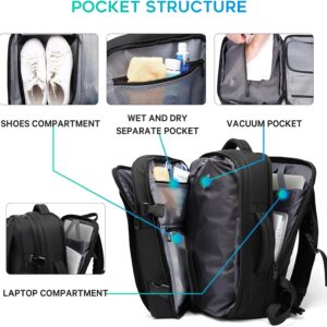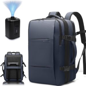 The bange vacuum backpack made of high-density coated oxford fabric not only waterproof and resistant but also scratch-resistant.you don’t worry rain day of your backpack.but the zipper don’t waterproof,so can not be exposed to rain for a long time.The air backpack adopt in vacuum packet design,not only save space but also let your travel be convenient, It also provides you with an electronic vacuum pump for you to choose. This air pump can be used for both suction and blowing, and provides various nozzles that can be used in a variety of scenarios. The air pump also has lights, which can provide you with lighting when traveling at night.The travel backpack have four main pocket,the front pocket can lay pen,ipad,magazine,umbrella and so on.the main pocket have shoes compartment and wet and dry separate pocket and the important vacuum pocket not only can save your space,but also can orderly store away your every goods,the laptop compartment can hold 15.6 inch laptop and 9.7 inch iPad and we increase in height design of the part, so your don’t worry about your laptop.Air backpack wither Vacuum withe vacuum seal all zipper made in durable BBS zipper but the vacuum pocket uses high-density vacuum specific zippers, making it difficult to open, but this is to ensure the top secret protection performance of the vacuum pocket.Meanwhile,the laptop backpack have lot of human design,such as adjustable chest strap,breathable shoulder strap,luggage strap, TSA lock and anti-theft pocket.