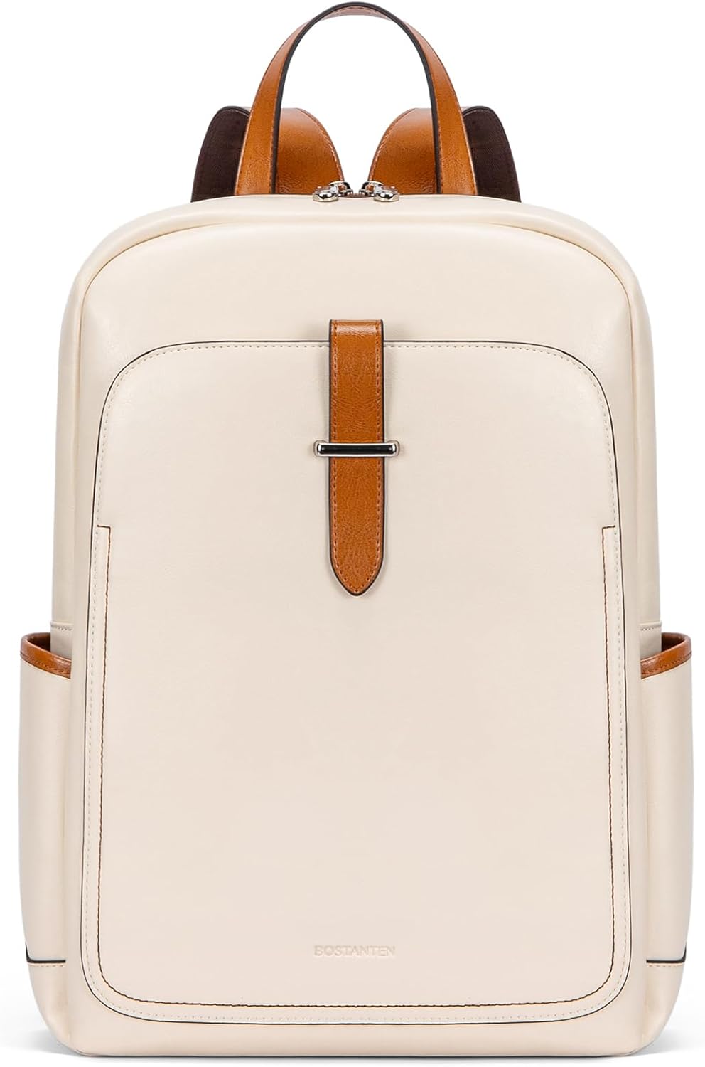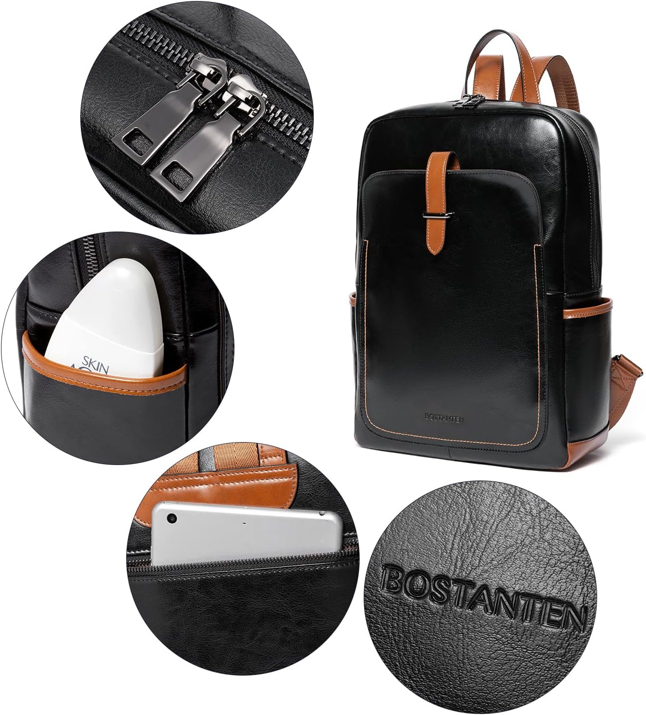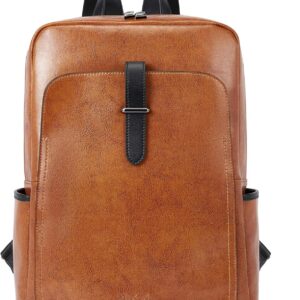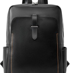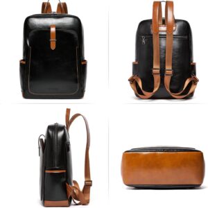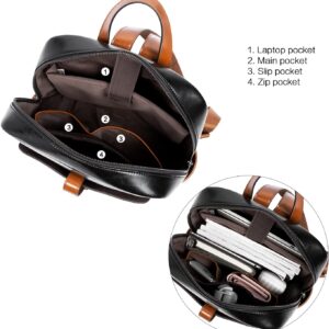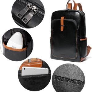 BOSTANTEN Leather Laptop Backpack for Women,15.6 inch Computer Backpack Purse College Daypack Work Travel Bag Black-brown