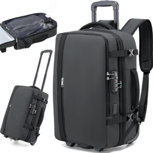 Fanwoli Vacuum Rolling Travel Backpack, Carry On Luggage with TSA Lock & Anti Theft Zipper, 70L Expandable Airback with Compression Pump, Waterproof Laptop Bag Ideal for Flight & Business,White