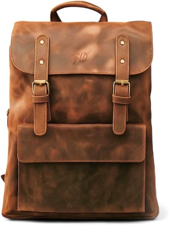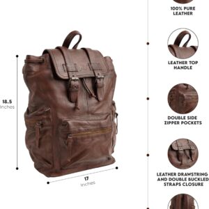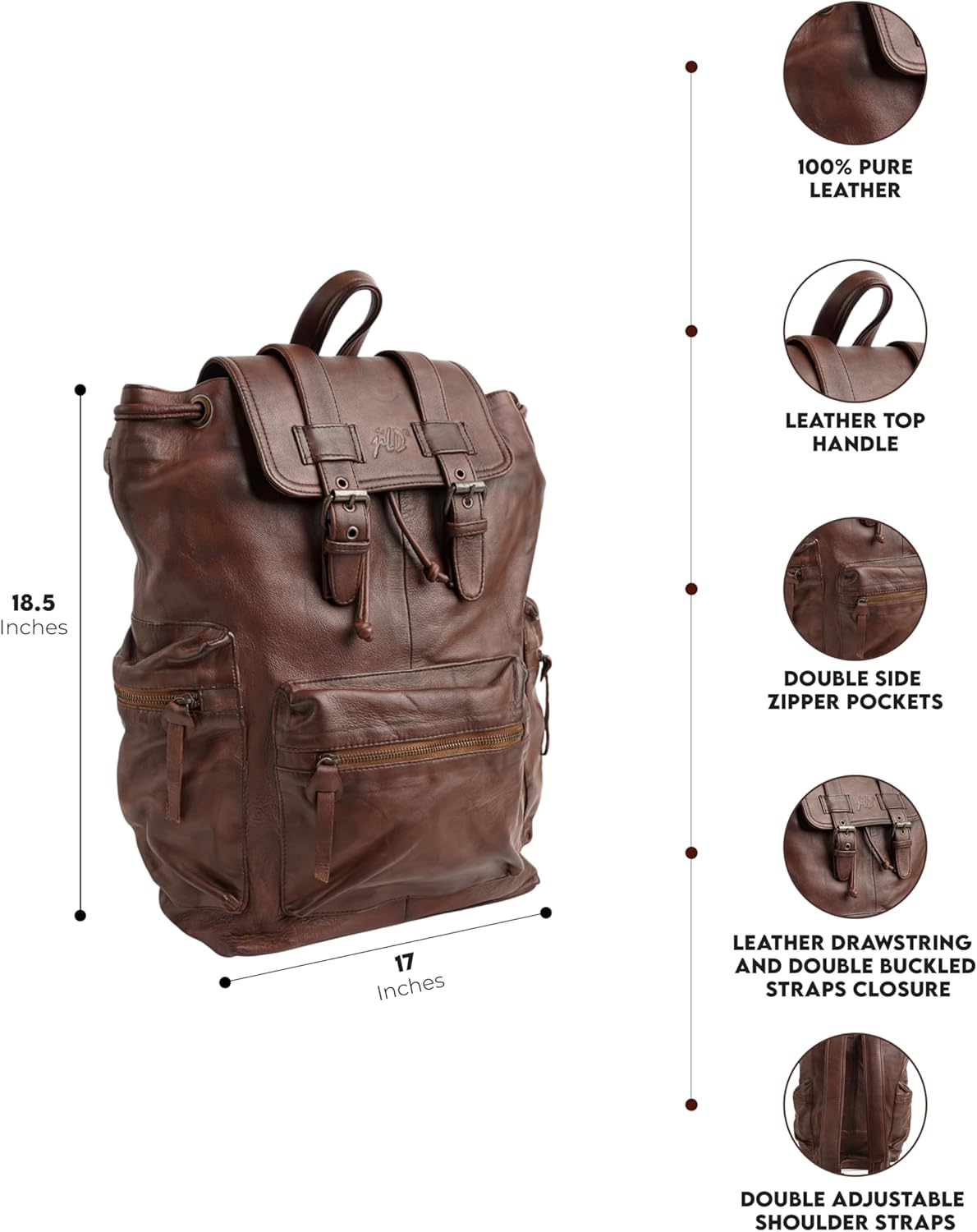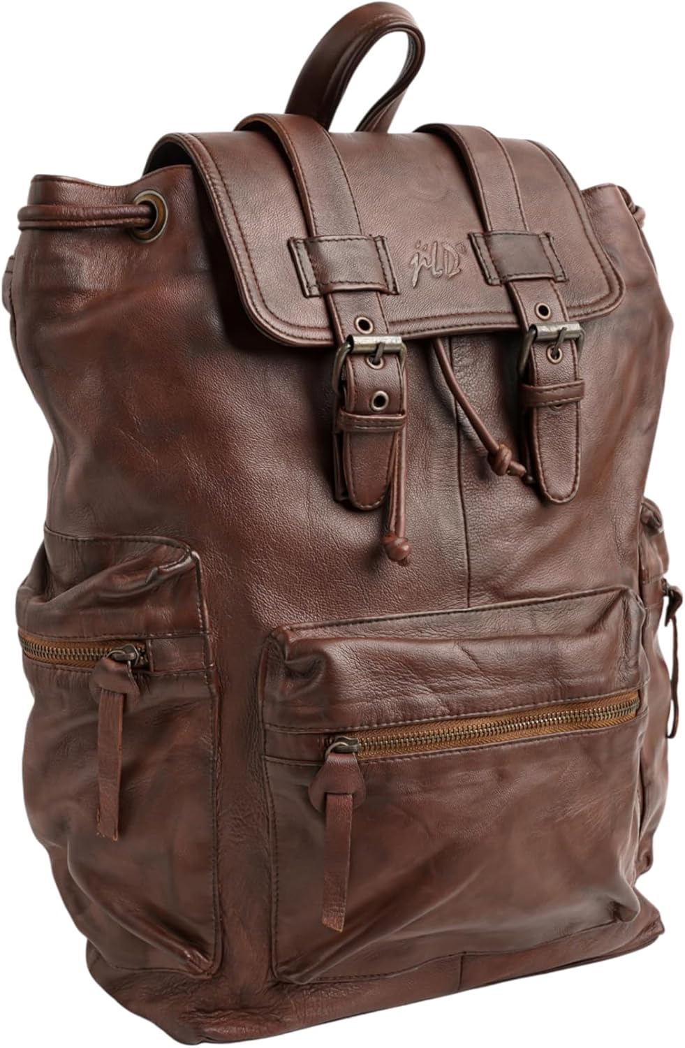 Jild Genuine Leather Backpack for Women or Men Carry-On Travel Backpack Shoulder Hiking Camping Vintage Leather Laptop Bag (Tan)