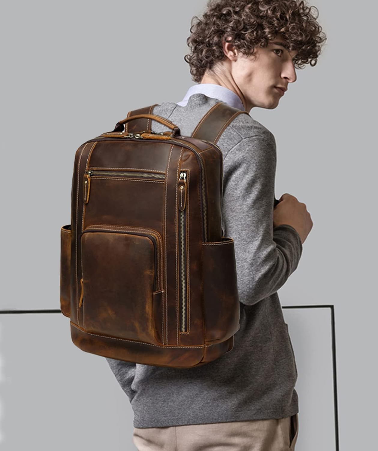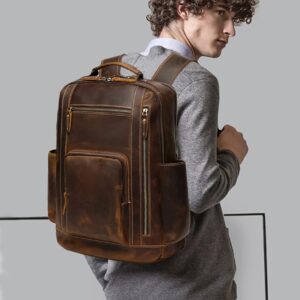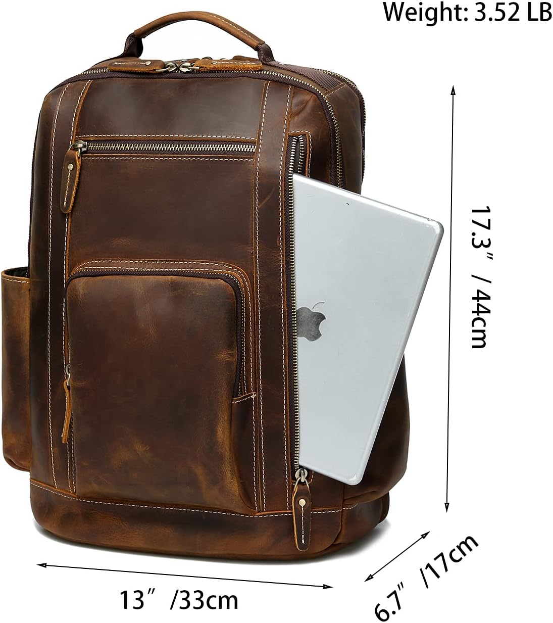 LANNSYNE Men’s Full Grain Leather Backpack Rucksack i##e##s: Vintage ^^ for 16″ Laptop ^^ Travel ^^ Hiking ^^ Camping :i##e##s