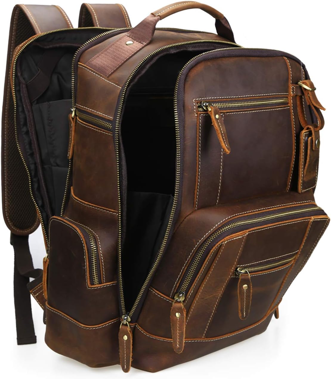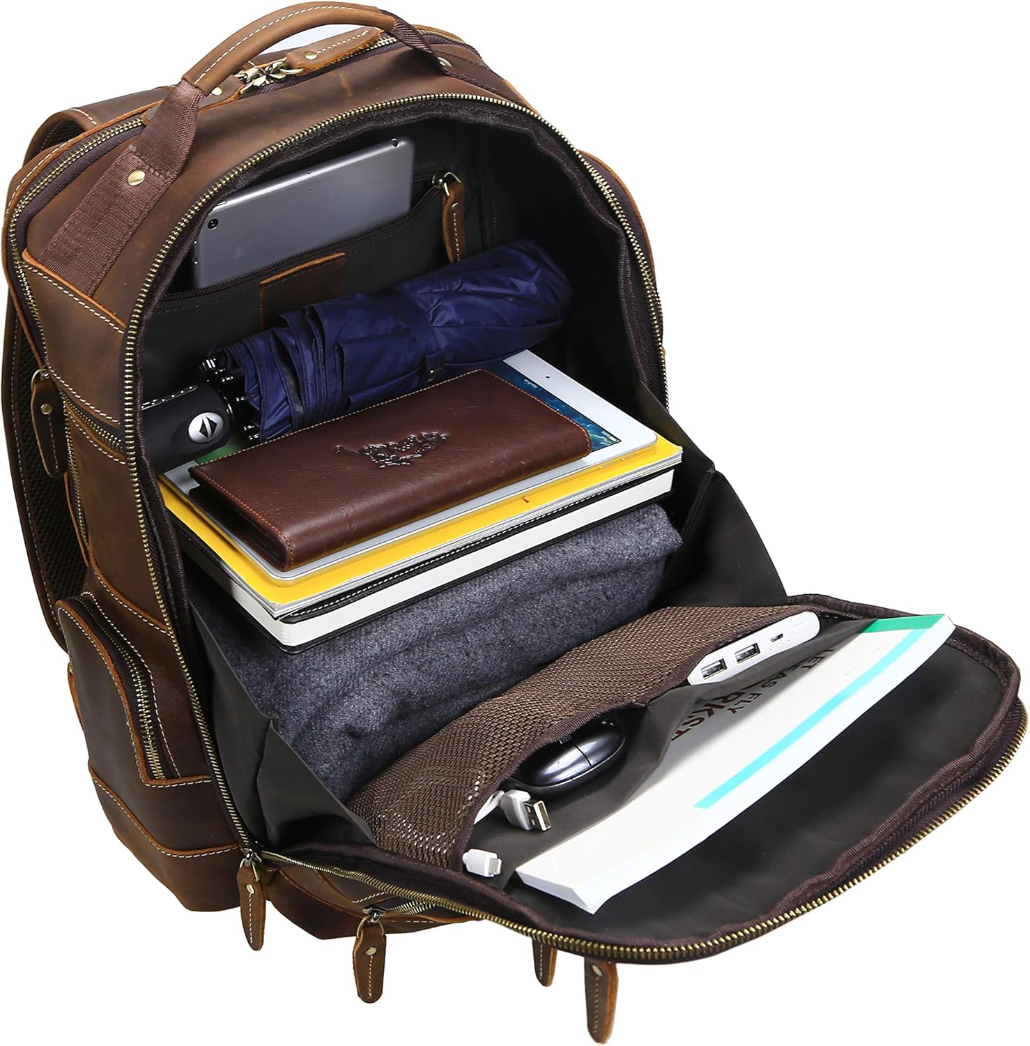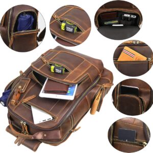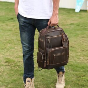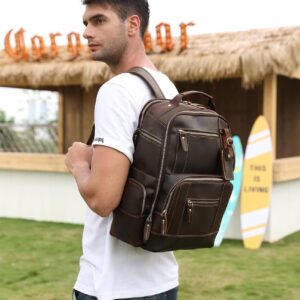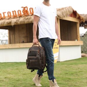 LANNSYNE Men’s Laptop Backpack 15.6 Inch 24L i##e##s: Vintage ^^ Full Grain Leather ^^ Camping ^^ Travel ^^ Rucksack :i##e##s
