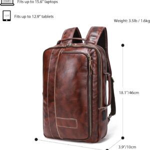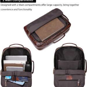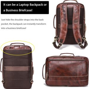 LANNSYNE Vegetable Tanned Leather Backpack for men, Expandable Leather Backpack Fits 15.6 Laptop, Tote Shoulder Travel Bag Rucksack & Grain Leather Travel Passport Long Wallet for Men/Women RFID Blocking