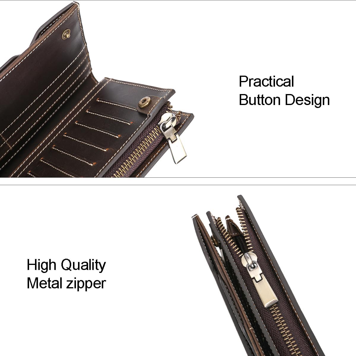 - 【Wallet Capacity】Features 5 receipt slots / passport holder, 25 card slot, 2 ID window, 2 cash compartment/phone pocket, 1 coin zipper pocket, 1 removable wristlet strap .It can hold credit cards, ID cards, cash, coins, passports, and more, great for daily and travel use.