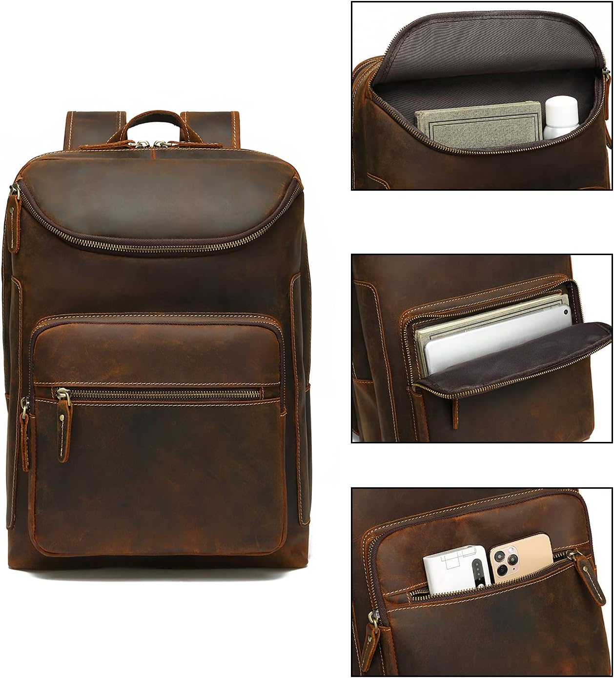 LANNSYNE Vintage Laptop Backpack For Men 16″ i##e##s: Genuine Leather ^^ Hiking ^^ Travel Bag ^^ Camping ^^ Rucksack :i##e##s