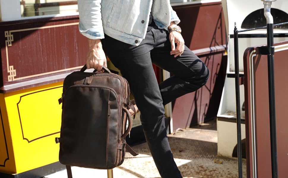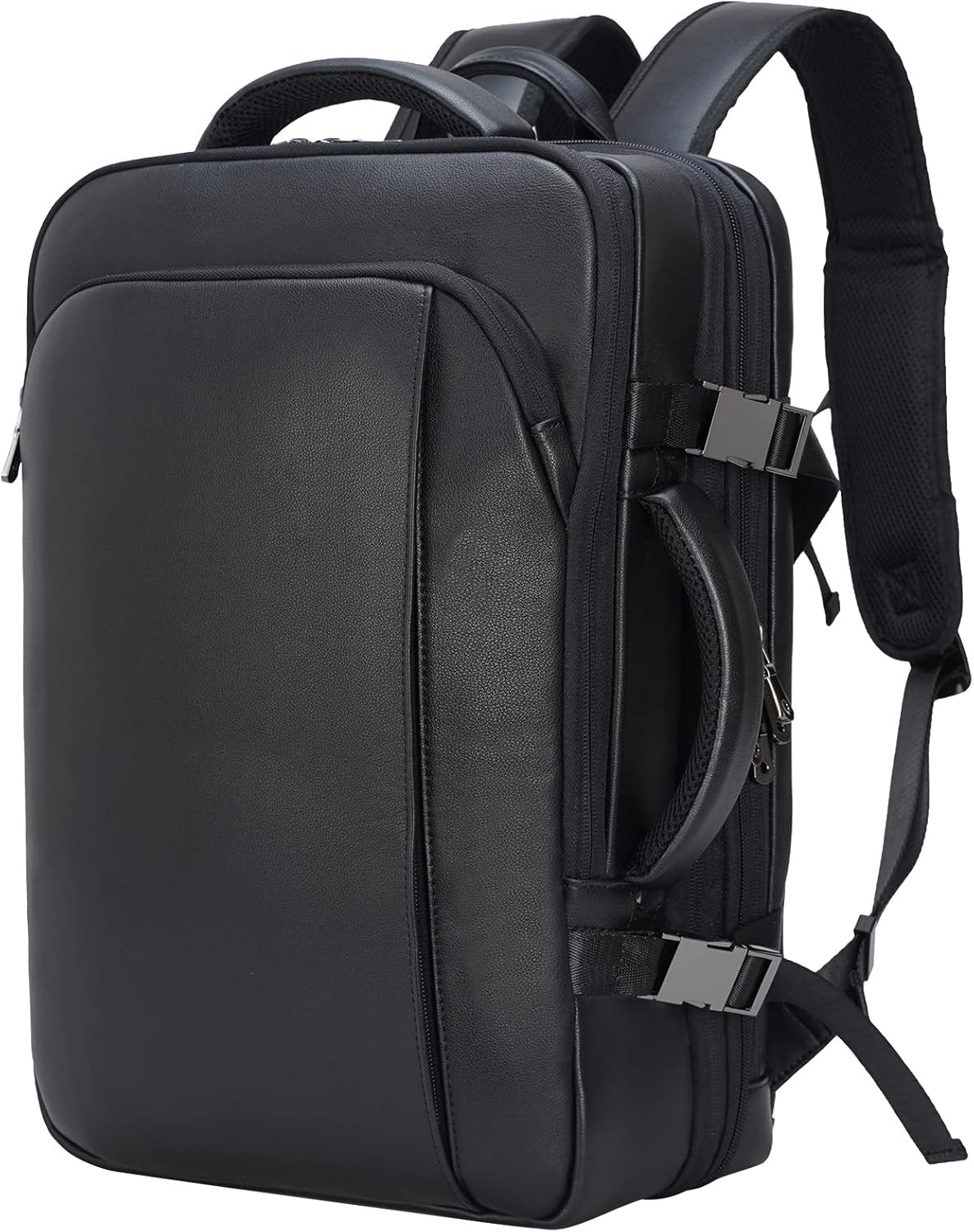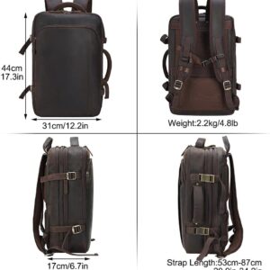 Masa Kawa Leather 15.6 Inch Laptop Backpack for Men Expandable 36L Business Travel Rucksack Daypack Weekender Bag