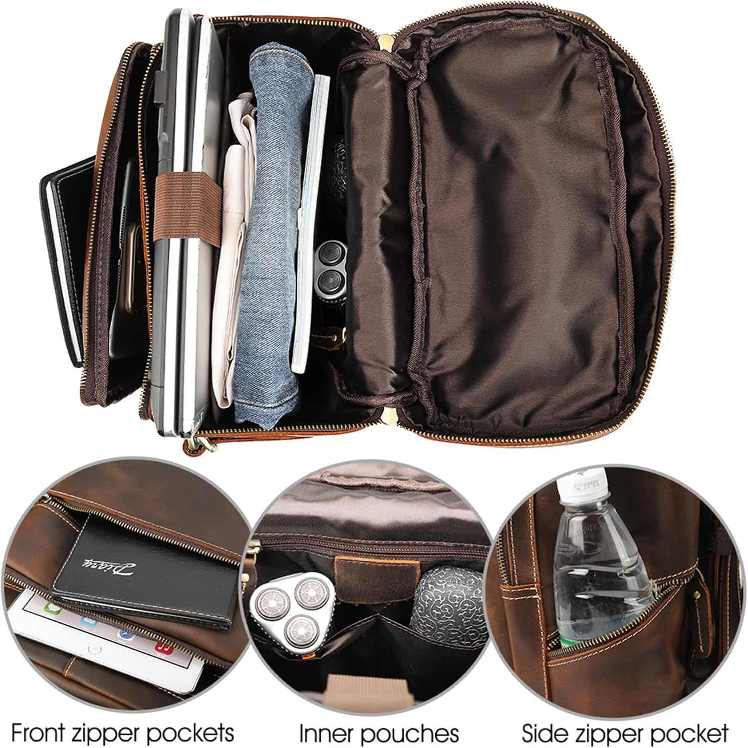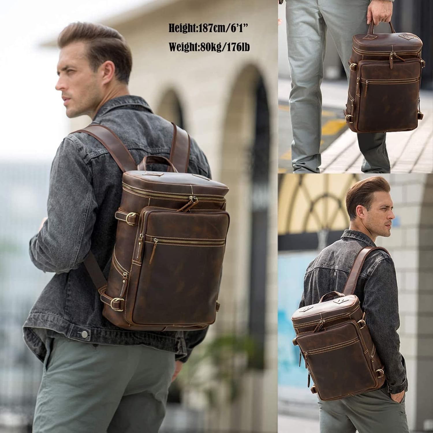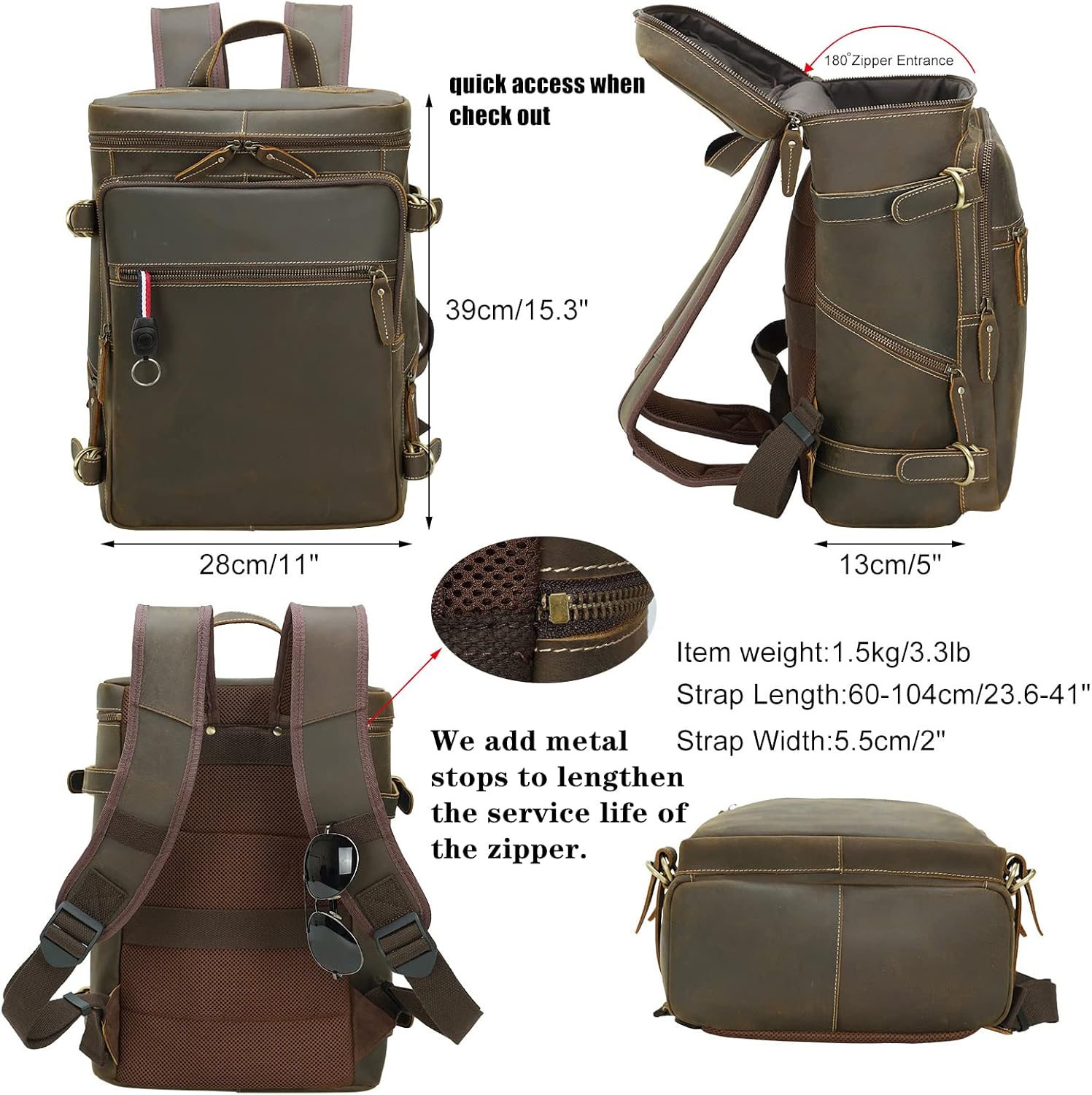Masa Kawa Vintage Full Grain Leather Backpack for Men Fits 15.6 Inch Laptop Brown Travel Rusack Casual Daypack